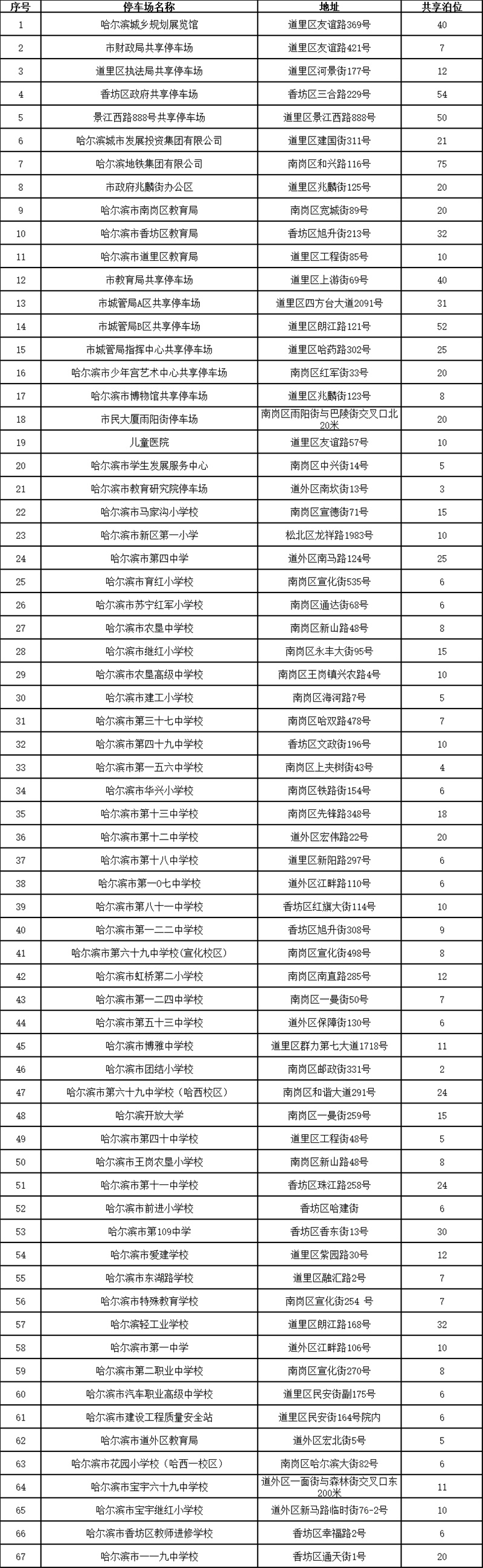 目前,哈市已依托“城泊通”系统共享模块开展停车泊位共享工作,并不断完善电子支付功能,逐步改造升级建立“哈尔滨智慧停车”系统,从而整合打造全市停车、充电“一张网、一幅图、一个App”,以提高停车便捷性。