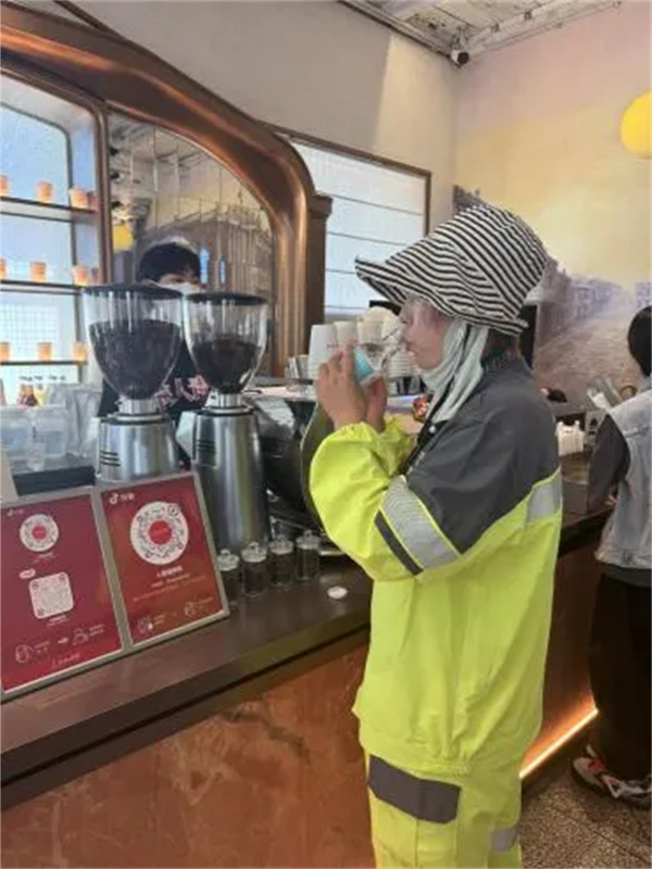 工作三个多月来,负责这个片区的道外环卫大队环卫工人张蔚和同伴也同样感受到小店的暖心之举。“有一次大雨我被隔在街上,就跑到咖啡店的遮阳伞下躲雨。”张蔚说,店员看到我,劝我进屋躲雨,我看屋里都是游客,不好意思进去。后来店员出来劝了好几次,我才进去。她说无论你是环卫工人还是游客,都请你到我们店里来避雨,因为大家都是一样的。真的就像商家广告牌上说的,环卫工人守护城市,他们来守护我们的温暖。游客眼看着一天比一天多,街上随手乱丢的垃圾却一天比一天少。“前几天哈尔滨最热的那几天,我正在埋头干活,一个小男孩跟妈妈走过来说,阿姨,给你个冰凉贴,你凉快凉快吧。”张蔚说,然后小男孩还告诉我可以贴在头上,也可以贴在手腕上。冰凉贴虽然很小,却让我特别感动。