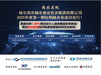 哈城发投集团成功发行1年期短期融资券,票面利率1.80%,再创历史新低